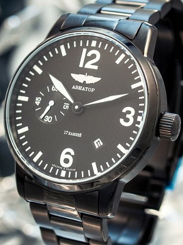 Aviator 45mm Mechanical, Hand Wind Black PVD Watch with SuperLuminova Hands and Markers 6974645B - This is one of the best-selling Russian pilot watches ever made. This model has a classic, yet beautifully designed black dial base with large easy to read numerals and indices. Big hands compliment striking dial and sub-dial at 9 clock shows the seconds. The hour and minute hands with markers are treated with C-1 SuperLuminova for excellent visibility even in the dark. The movement is the manual winding 17 jewel 3105 conservative with a rated execution time of 42 hours when fully charged. Some owners report that they used to get up to 60 hours of battery life with the movement in this clock. He lights a well-made black PVD stainless steel bracelet with a buckle. Coated 45 mm stainless steel case with black PVD. Mon Features, Aviator 45mm Mechanical, Hand Wind Black PVD Watch with SuperLuminova Hands and Markers 6974645B.