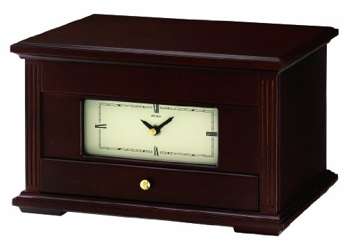 Seiko QXG141BLH Desk and Table Clock - Stay organized and on time with the Seiko Clock QXG141BLH jewelry box. This beautiful wooden jewelry box has embedded a dark brown surface and a clock in front. Inside you'll find a mirror, and a jewelry tray clock tray that can accommodate up to four watches. A drawer provides additional storage space.About Seiko Over its 120-year history as a manufacturer of fine timepieces, the Seiko name has become synonymous with cutting-edge technology, ultra-precision, constant innovation and refinement. Millions worldwide rely on Seiko wristwatches to keep them in the program. Two generations have been exciting, grown Olympic and World Cup competitions where victory or defeat is defined within a fraction of a second, all of Seiko timekeepers.Seiko s' f supervised, Seiko QXG141BLH Desk and Table Clock.
